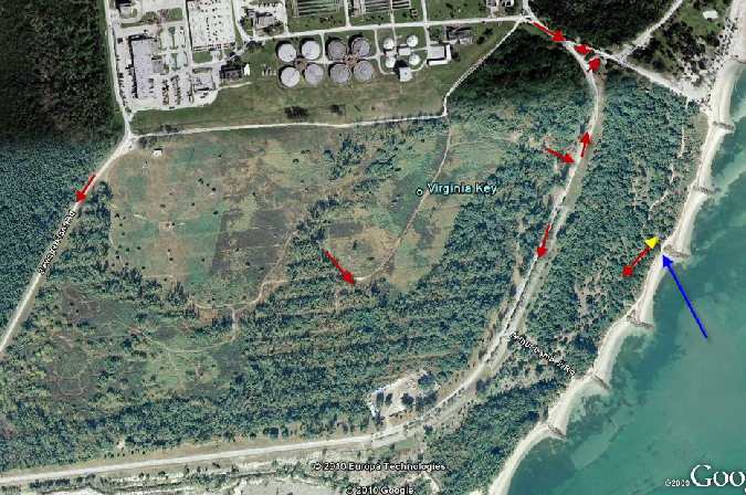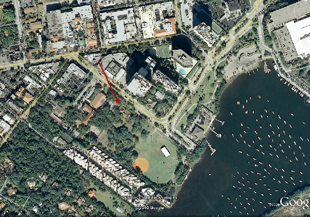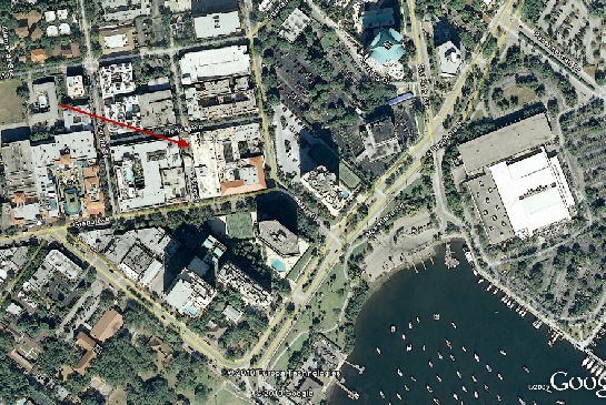 Red arrow is Michael’s work place. Black arrow is where Michael and Gerard are parked. Yellow arrow points to where Virgil was. The blue arrow points to where Tony Rome’s boat was tied up.