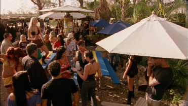 Then we go back to Jimbo’s where Michael calls Fiona. During the call where Fiona says she is on her way to the movies she is actually close by. This too was filmed at the Miami Seaquarium. At the end of the scene we see her cancel her movie plans outside what looks like it may be a movie theater. This is actually the main entrance to the seaquarium.