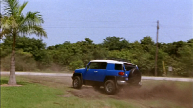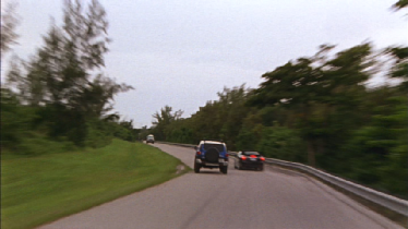 Then Michael explains that they need to get on the road to gain the advantage over the Voodoo Blue FJ . They come out of the woods and turn left onto Arthur Lamb Jr. Road. In real life this would be a mistake because it traps them on the island.