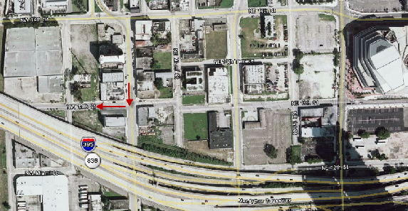 13th Street west of North Miami Avenue by NW Miami Court.