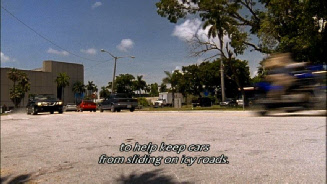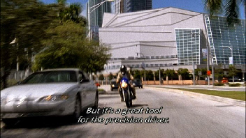 After Fiona cuts off traffic causing an accident she continues up NE 4th Avenue. Through out this chase they go over the same exact stretches of road with different camera angles multiple times. Almost every segment of road they use, they use for several cuts.